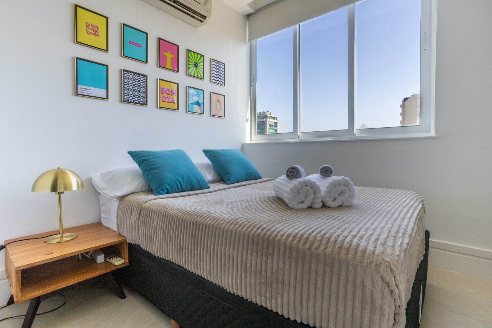 Every room has AC, including the kitchen, which makes a difference when Rio gets hot. There's a washer and dryer in the unit, room-darkening shades in the bedrooms, and quality linens with extra pillows if you need them.